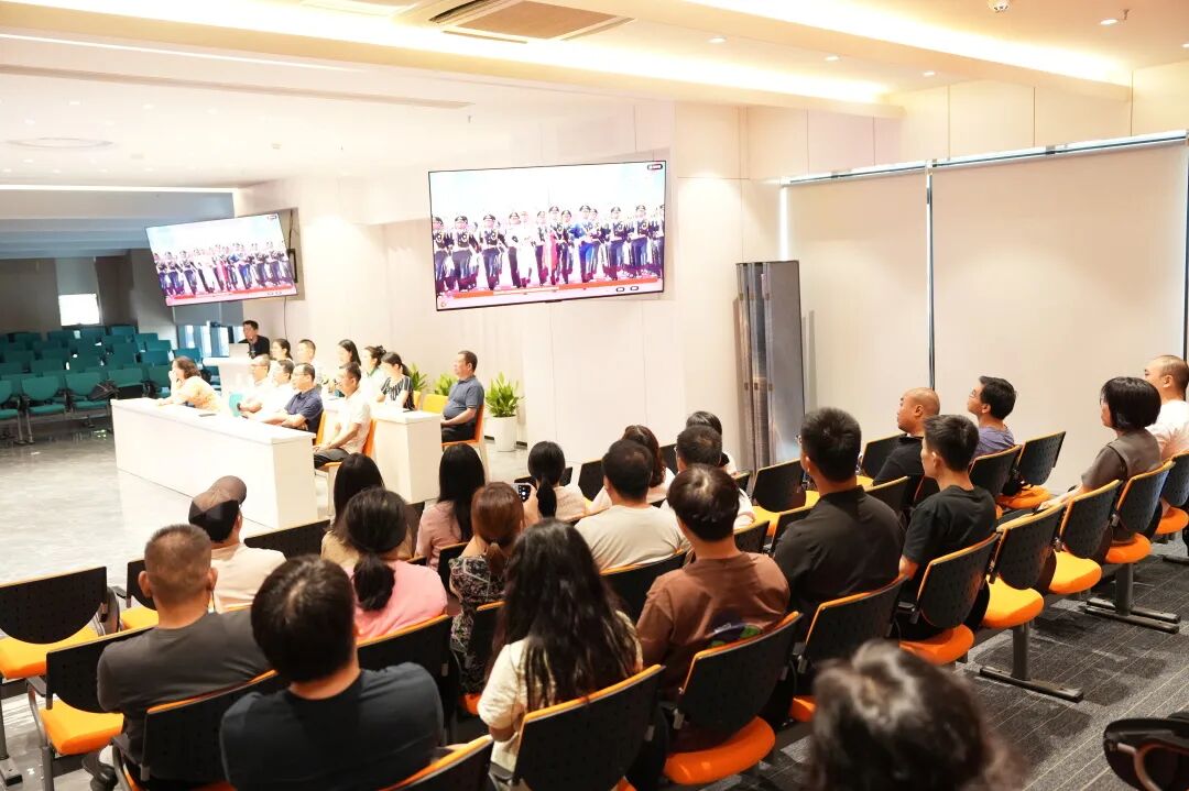 ▲ 全體黨員與公司員工集中觀看閱兵盛典