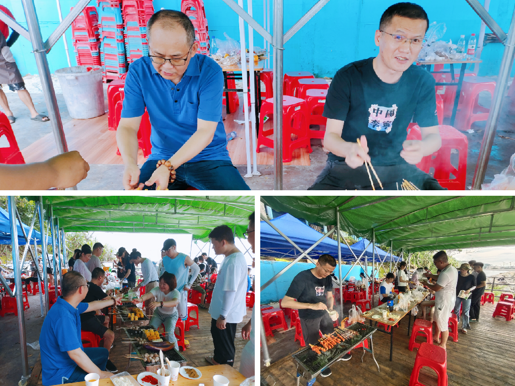 一線海景燒烤,各式各樣的烤串、幾杯啤酒、飲料,還有各種放松的娛樂項目。全員齊動,自給自足,推杯換盞,把酒言歡,其樂融融,好不愜意。